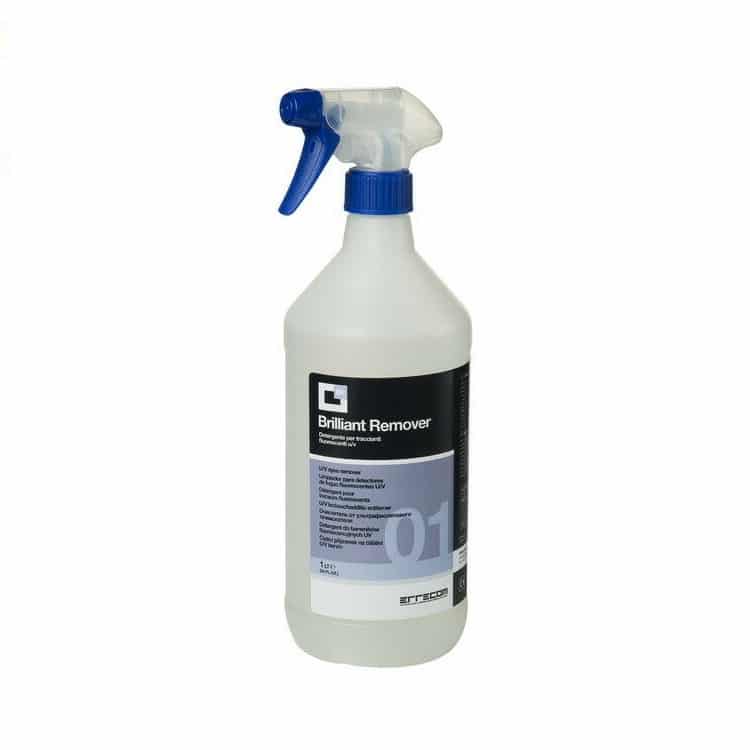 Brilliant Remover is a cleaner specifically formulated to remove any trace of fluorescent UV leak detector dye from surfaces, charging valves, tools and any part contaminated during refrigerant gas leak detection. The perfect and complete removal of fluorescent UV tracer is necessary to avoid any subsequent false localization of leaks.